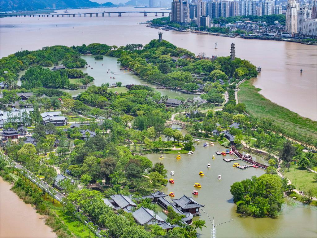 浙江省温州市鹿城区江心屿景区(无人机照片,2025年5月1日摄)。新华社发(苏巧将摄)