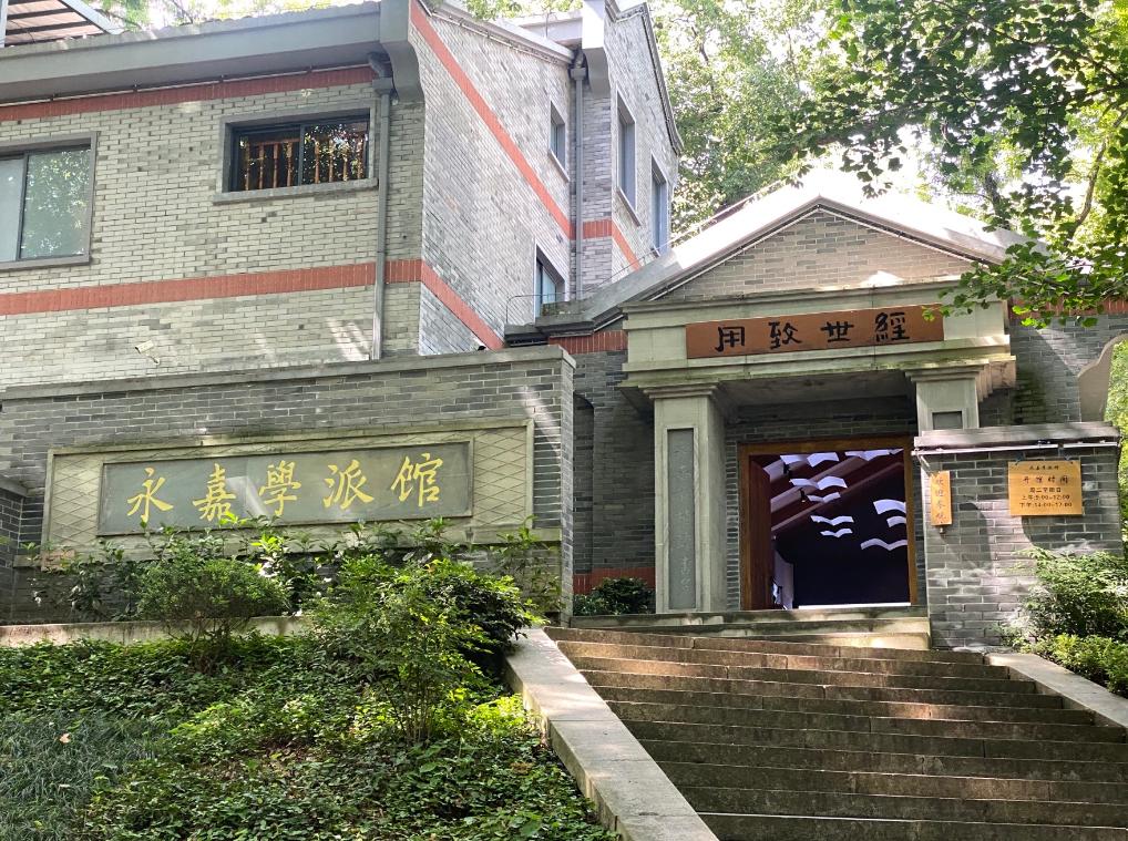 在温州鹿城区海坛山公园的茂密树荫间,坐落着一座青墙灰瓦的建筑——永嘉学派馆。