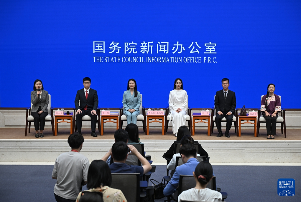 6月25日,国务院新闻办公室在北京举行“新征程上的奋斗者”中外记者见面会,文化和旅游部推荐的基层代表围绕“推动文化和旅游高质量发展 丰富人民美好生活”与中外记者见面交流。 新华社记者 金良快 摄