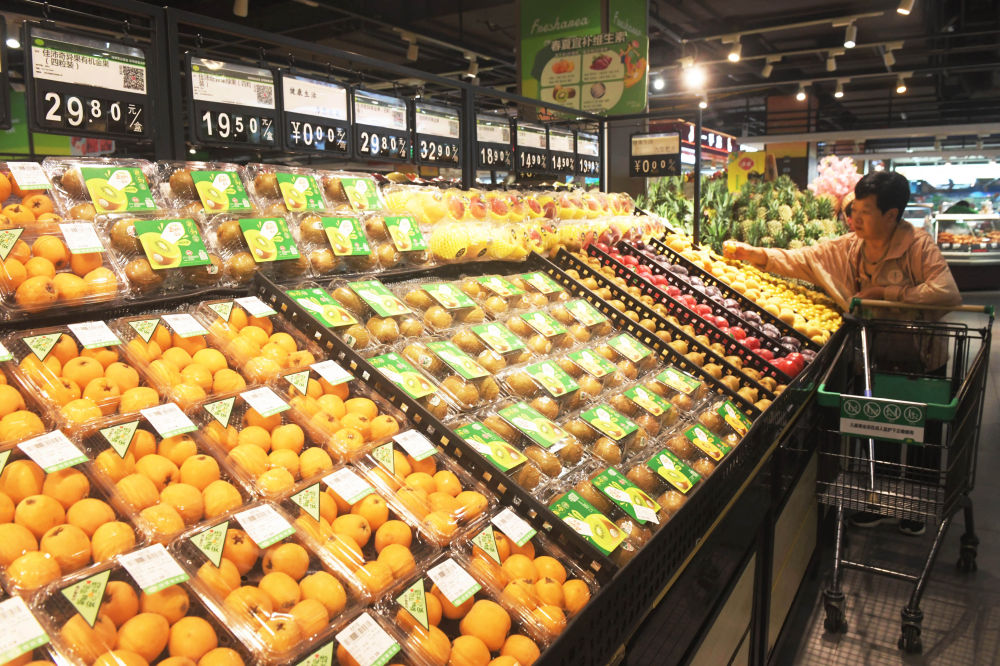6月9日,顾客在河北省石家庄新乐市一家超市选购水果。新华社发(贾敏杰摄)