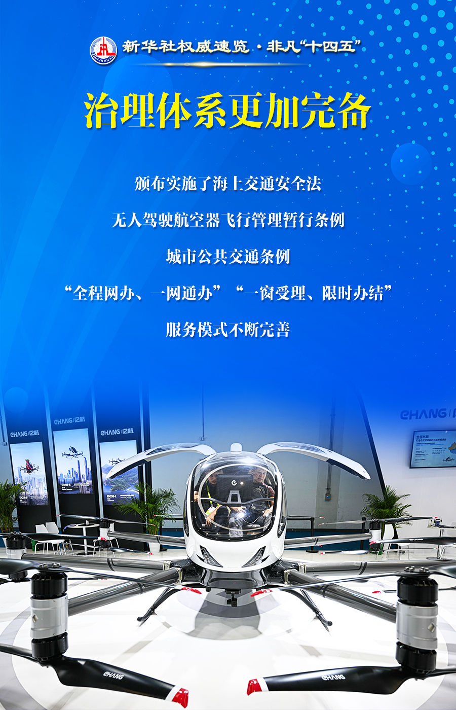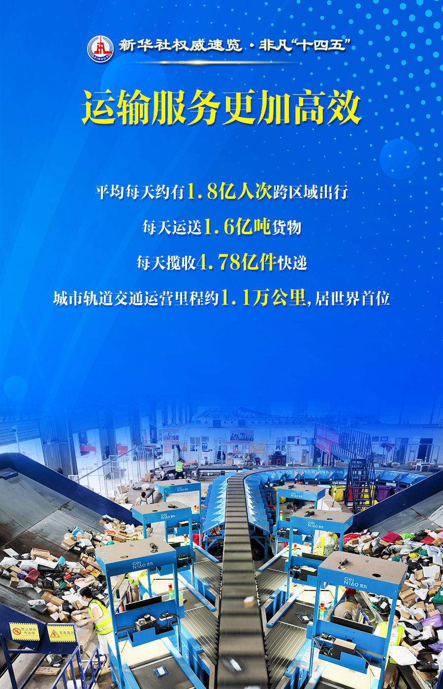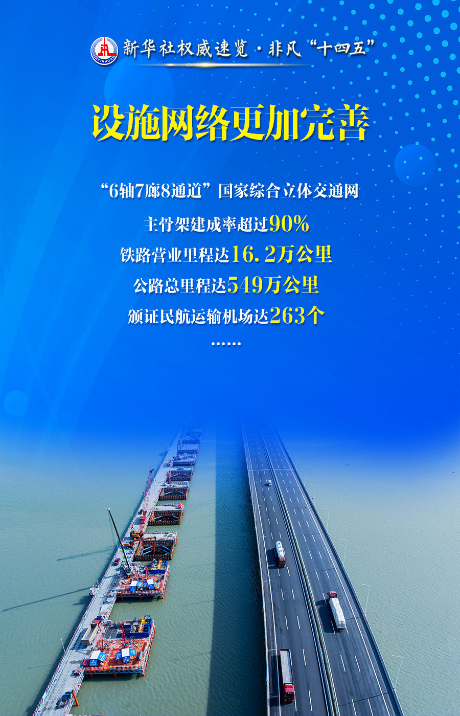 “十四五”时期,我国加快建设交通强国实现良好开局。在21日举行的“高质量完成‘十四五’规划”发布会上,交通运输部部长刘伟说,这五年,我国交通运输事业取得了历史性成就,综合交通运输体系建设实现突破性进展。这组海报,带你去看。