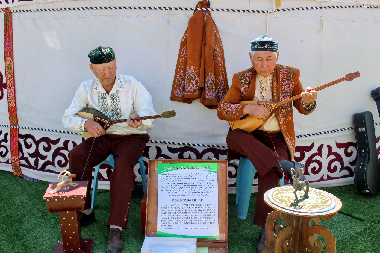 彩虹布拉克的毡房外有非遗沃尔铁克的技艺表演,采访团被“会跳舞的小山羊”所吸引。非遗沃尔铁克代表性传承人赛里克·合德尔毛拉介绍到,“沃尔铁克”在哈萨克语中是“领头羊”的意思,哈萨克族在与自然交往的过程中度过游牧时代,“沃尔铁克”不仅是小孩子解闷的儿时玩具,也是代代相传的精神文明。伴随着冬不拉的弹奏,拨弦的手牵动连着“小山羊”的线,控制着它的跳跃姿势,模仿岩羊在悬崖峭壁上行走奔跑。