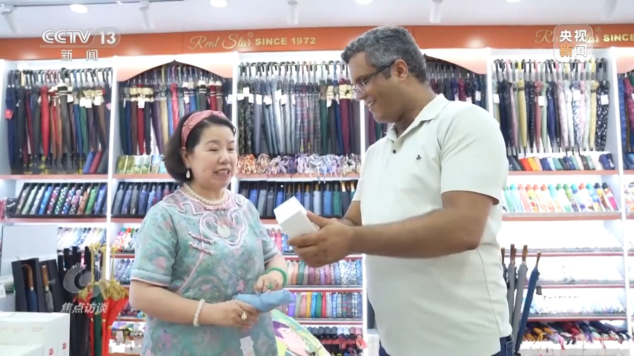 张吉英告诉记者,她父亲做了一辈子伞,1997年她带着父亲的期许和家传的老手艺,从绍兴上虞来到义乌创业,从一米摊位起家,发展到成立自己的企业,开启公司化运营。随着企业的发展壮大,2010年张吉英开始打造自主品牌,2013年借“一带一路”倡议的东风,她的公司在100多个国家注册了涵盖20多大类的伞具品牌商标,开发出超3000种自主设计产品,成功在国际市场打响了自己的品牌。