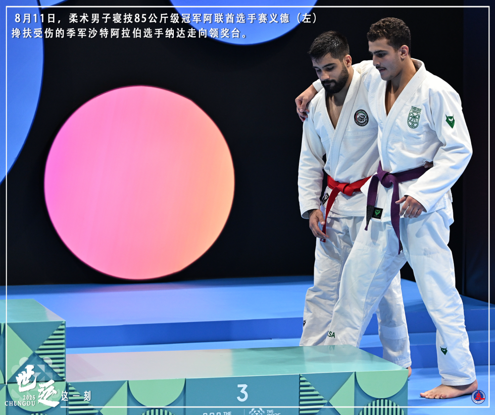 世运赛场上 运动员们并肩作战 用团结点燃赛场 以拼搏诠释热爱—— 这,就是体育最美的光
