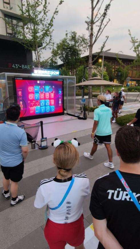 AI智能互动运动终端设备支持壁球、网球、足球、篮球、排球等多种球类运动互动。成都世运会执委会供图