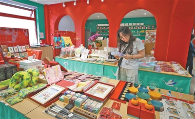 在文创区,钥匙扣、冰箱贴、玩偶等产品琳琅满目,黄女士难以取舍。“这个跷跷板冰箱贴可以动,那个风车冰箱贴能转。您也可以选择单店限定产品,在其他门店买不到的。”熊猫邮局工作人员杨凯洋介绍。