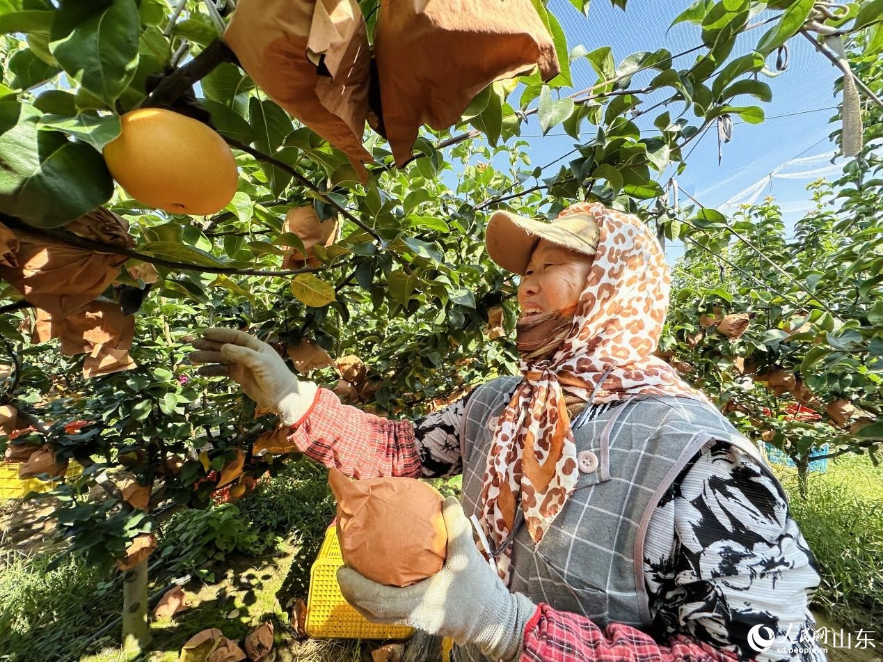 一托、一转、一拧,一颗硕大的秋月梨被麻利地“下树”,轻柔地放进身边的果箱。