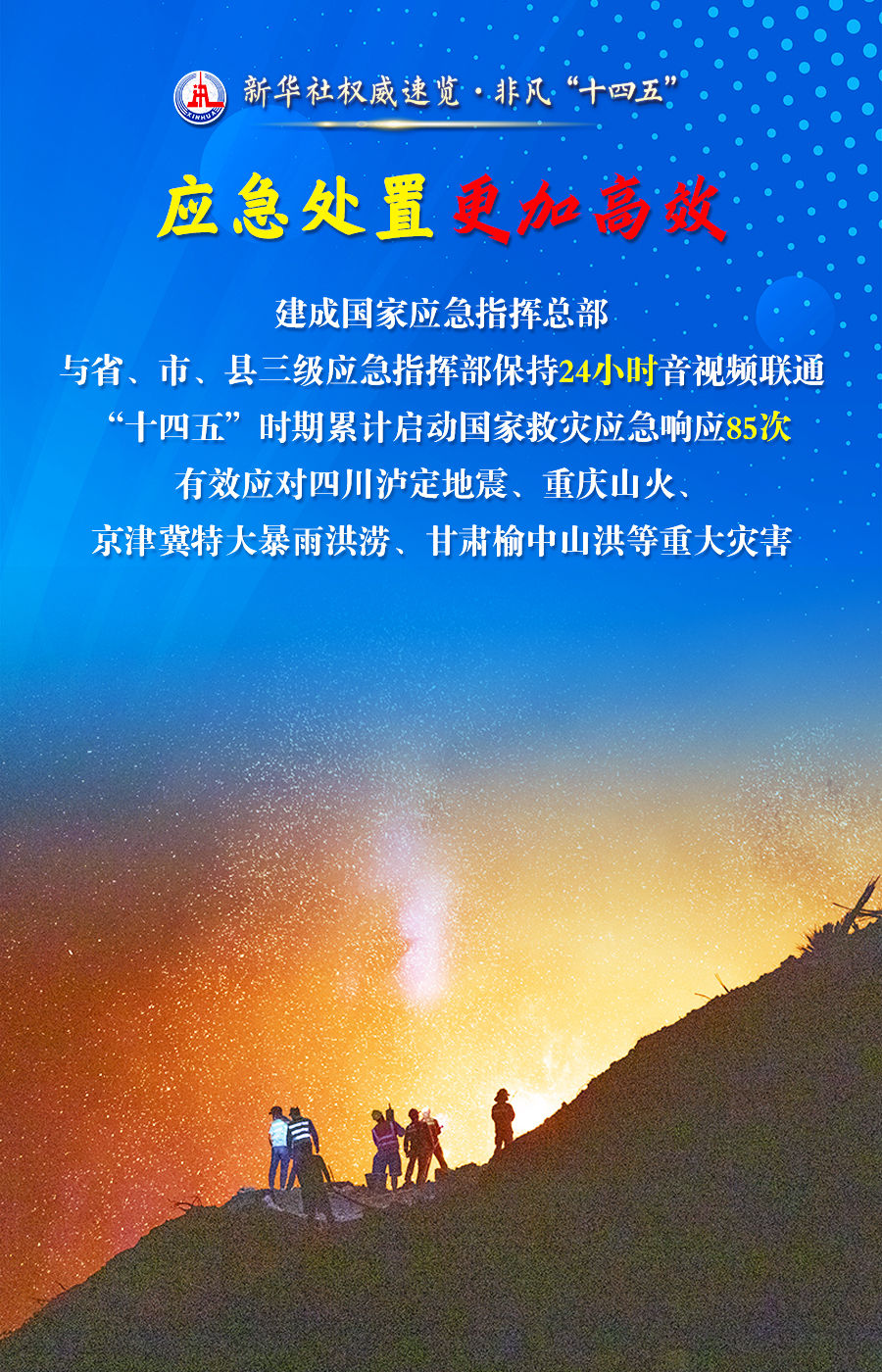 24日,国新办举行“高质量完成‘十四五’规划”发布会,应急管理部部长王祥喜说,“十四五”时期,应急管理走过了一段很不平凡的里程,打赢了一场又一场抢险救灾的大仗硬仗,推动应急管理体系和能力建设取得突破性进展和历史性成就。跟随海报,一起了解。