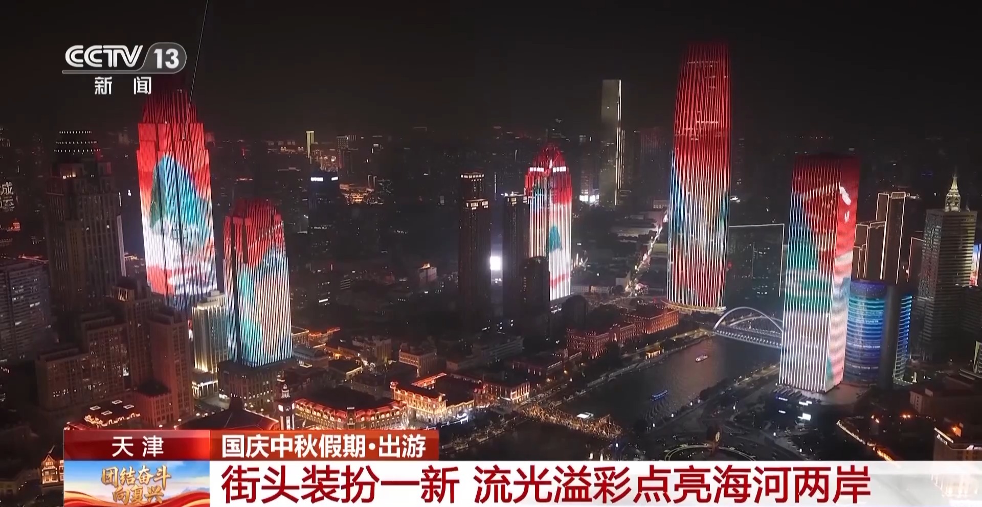 为庆祝国庆,天津街头装扮一新。1.8万面国旗装点城市街道,1.7万多个花箱花篮鲜花盛开,80个新建提升的口袋公园全面开放,各个绿化节点、美丽街角装扮一新,处处洋溢着喜庆祥和的节日氛围。同时,天津还对海河夜景灯光秀进行了升级,打造国庆主题创意灯光秀。灯光秀既展现了长城、黄河、长江等祖国壮丽风光,也呈现了天津七里海湿地、盘山秋色等本地美景,一派喜气祥和。