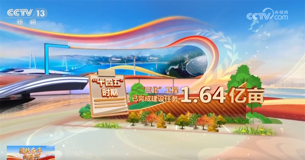 这五年,生态建设创造美丽中国“新奇迹”。“三北”工程攻坚战三大标志性战役全面打响,已完成建设任务1.64亿亩。黄河“几字弯”绿进沙退;科尔沁、浑善达克流动沙地歼灭战有力阻遏京津风沙源;塔克拉玛干沙漠边缘全长3000多公里的阻沙防护带构筑起“绿色长城”。