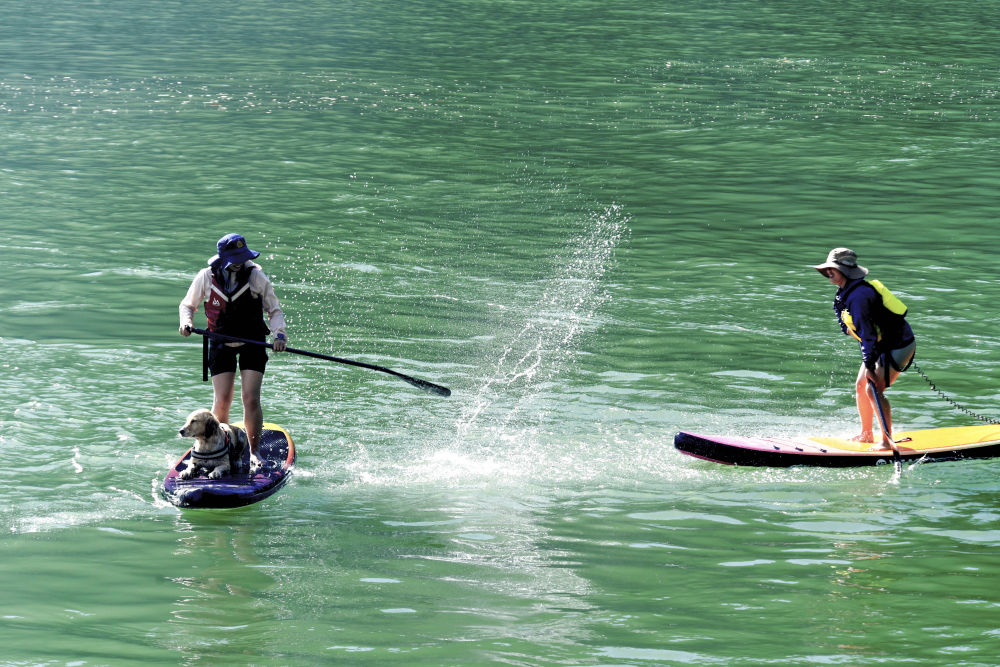 10月4日,游客在云南大理南涧彝族自治县公郎镇猛龙渡体验桨板。 新华社发(适志宏摄)