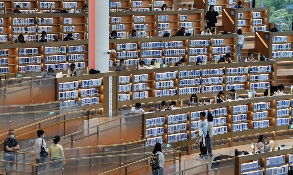 10月5日,市民在北京城市图书馆内读书。新华社记者 李欣 摄