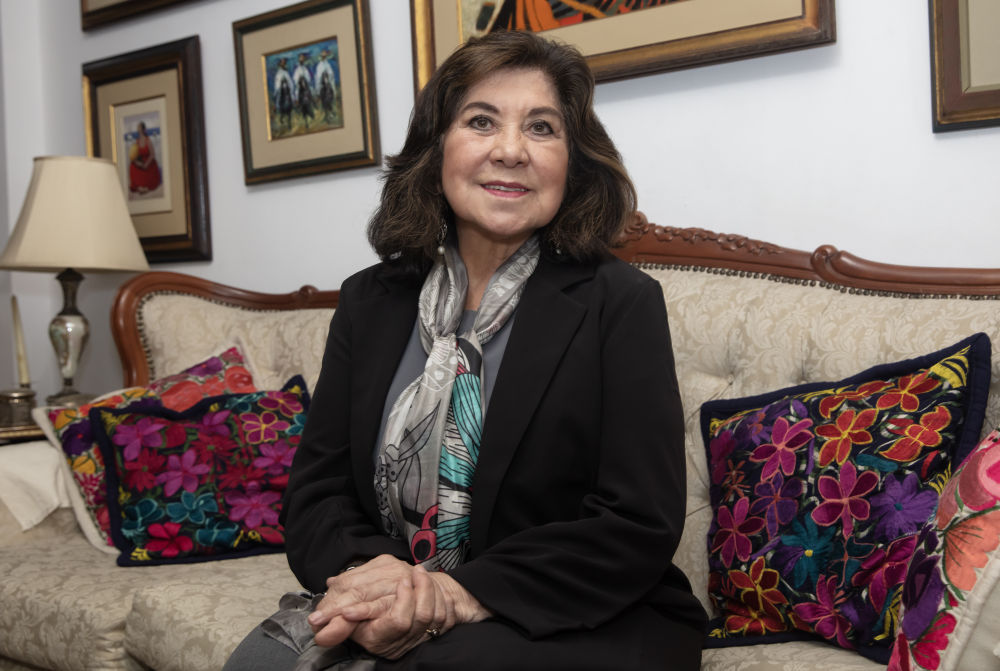 9月18日,秘鲁前国会主席玛尔塔·查韦斯在首都利马接受新华社记者专访。新华社发(玛丽安娜·巴索摄)