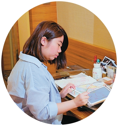 香港青年林颖彤在位于香港荃湾西如心酒店的青年宿舍中画画。 王申 摄