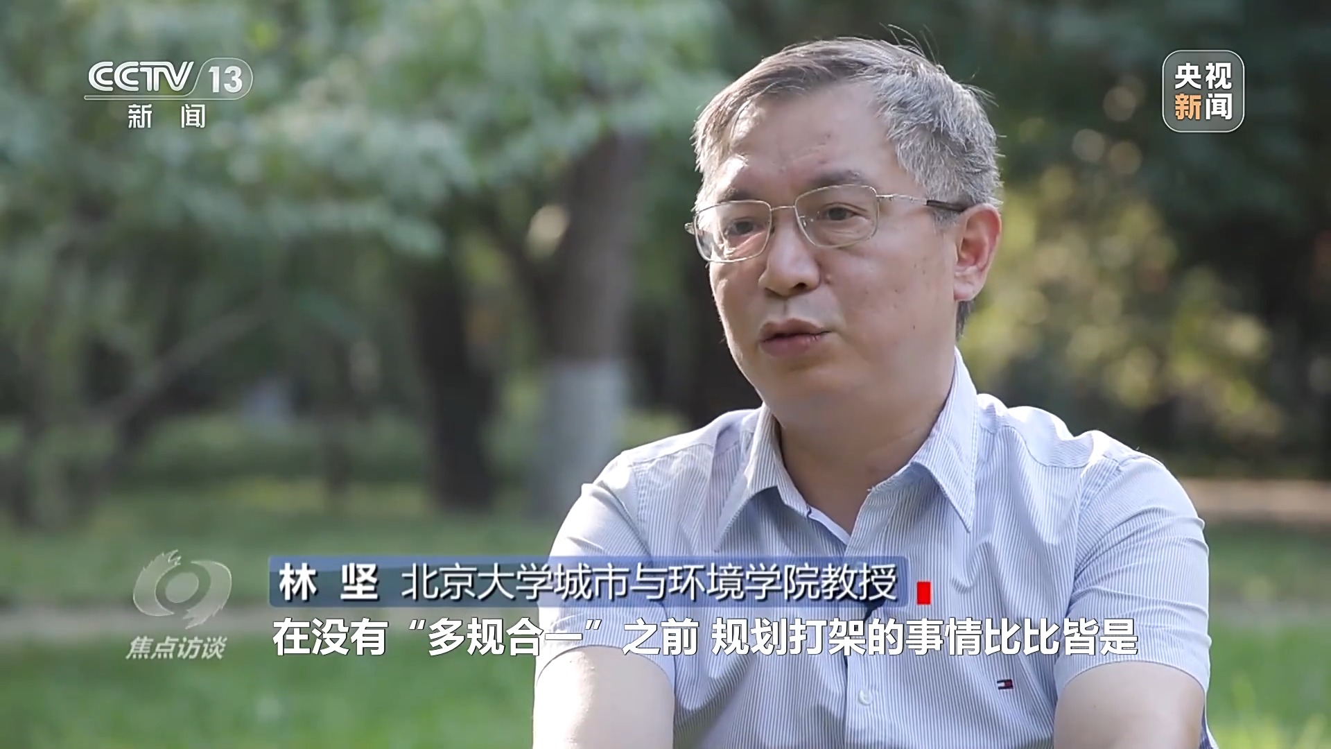 北京大学城市与环境学院教授 林坚:“在没有‘多规合一’之前,规划打架的事情比比皆是,不少地方尝试着推进‘多规合一’,总书记说的要形成一张蓝图,一张蓝图绘到底,要坚持系统观、全局观,通过统筹兼顾让大家形成相应的合力。”