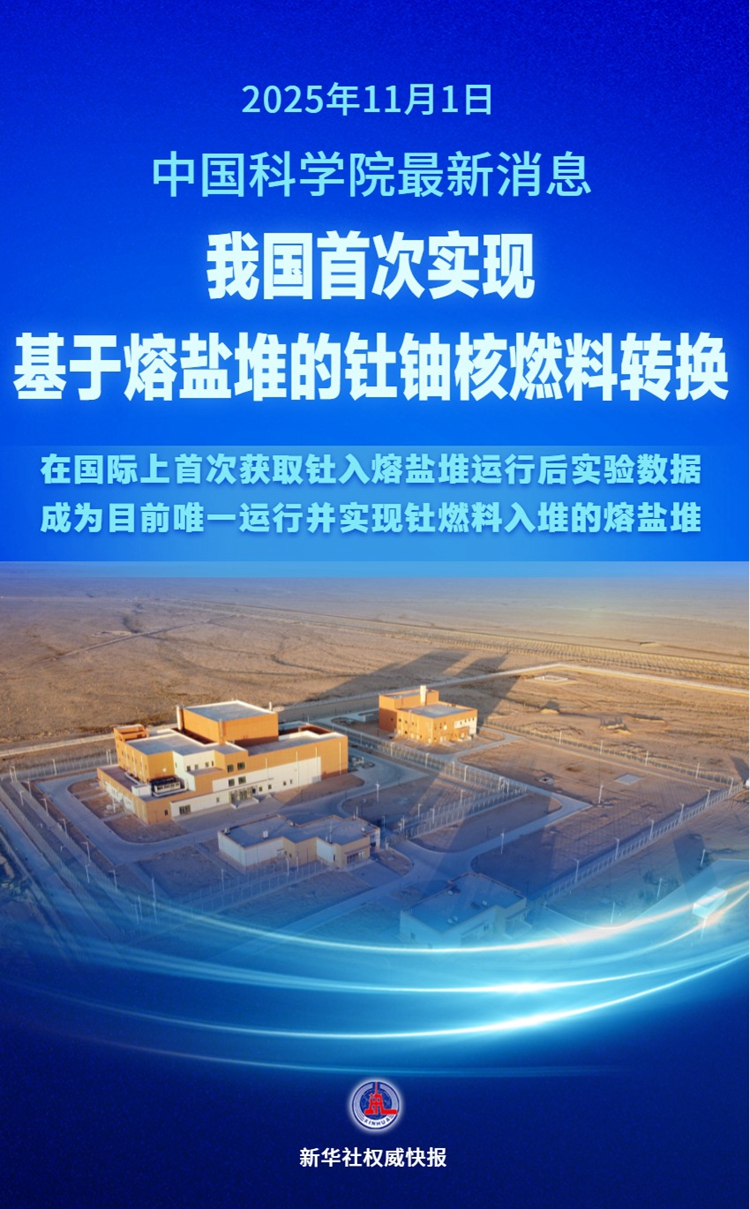 这是钍基熔盐堆研发进程中的重要里程碑,为我国未来钍资源的规模化开发利用、发展第四代先进核能系统提供核心技术支撑与可行方案。