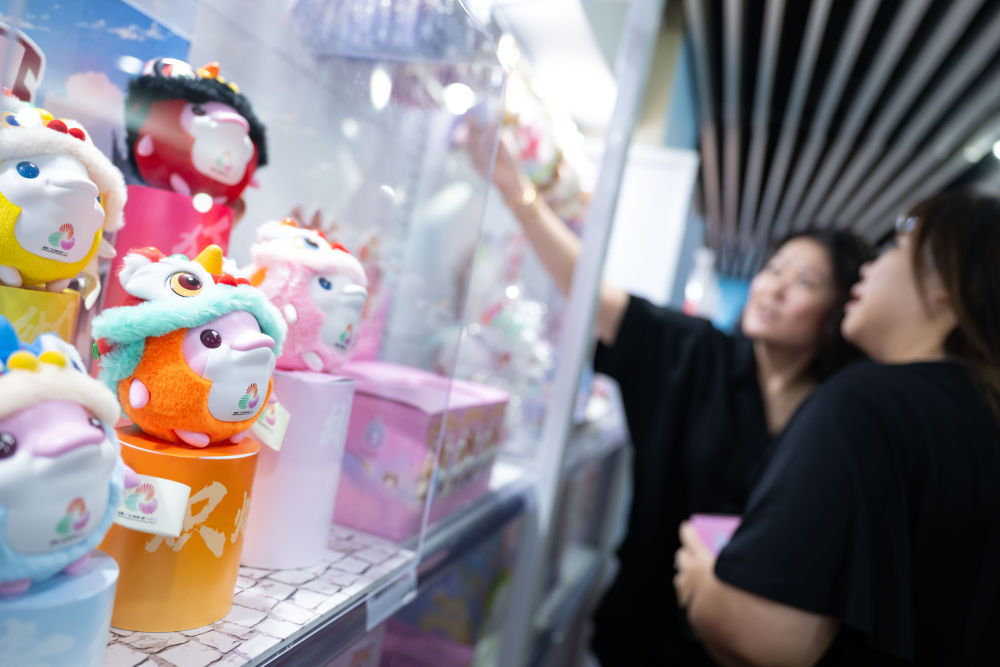 8月1日,市民在十五运会和残特奥会澳门赛区官方特许商品零售店选购。新华社发(张金加摄)