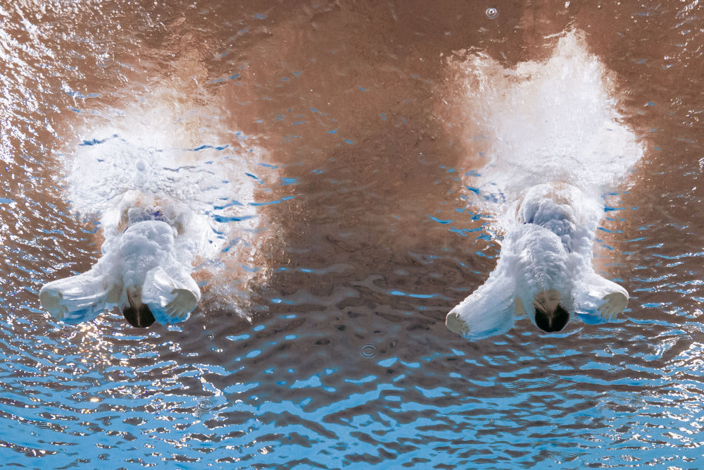 11月2日,广东队组合全红婵/王伟莹在跳水女子团体赛双人10米跳台项目比赛中。新华社记者 夏一方 摄
