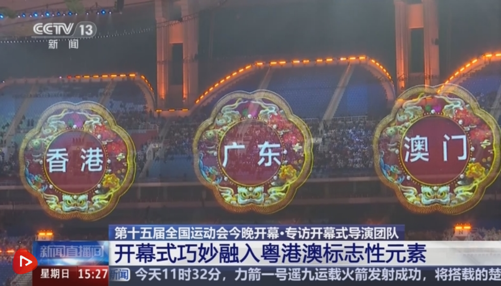 作为首次由粤港澳三地联合承办的全国运动会,十五运会开幕式巧妙融入香港维多利亚港、澳门大三巴、广州“小蛮腰”等标志性元素,展现粤港澳大湾区互联互通的蓬勃生机。十五运会开幕式总监制刘伟强介绍,粤港澳有很多共通的元素,划龙舟的端午节也是一样,中秋节也是一样,从小看黄飞鸿、叶问这些。