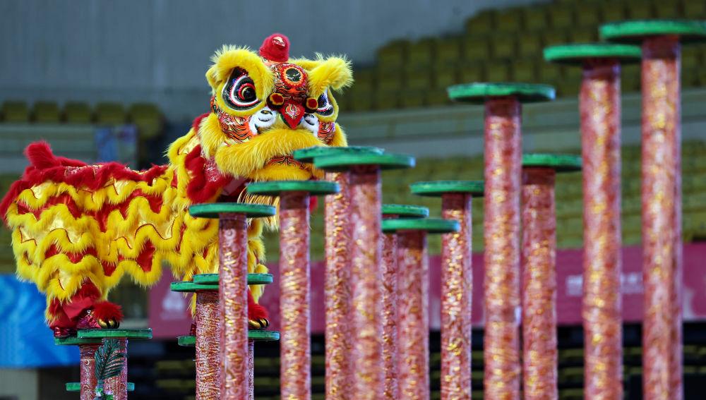 11月11日,粤港澳联队在第十五届全国运动会群众展演舞龙舞狮南狮自选项目决赛比赛中。最终,粤港澳联队获得一等奖。 新华社记者 王鹏摄