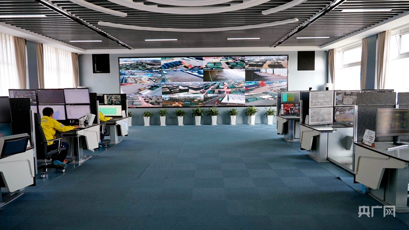 镜头从岸线来到西联公司件杂货数智中心,这里是整个码头的大脑。落地窗外,“中远海运长青”轮稳稳靠泊。数智中心内,工作人员对着电脑屏幕进行操控,上面显示着码头各处的实时画面,有的电脑前还有方向盘,电脑桌下还有刹车、油门。“这里是操控IGV的,通俗来说就是自动驾驶的运输车,在这个操作台上,就可以实现远程监控,有点像打游戏。”青岛港西联公司操作部副经理孙长杰介绍。