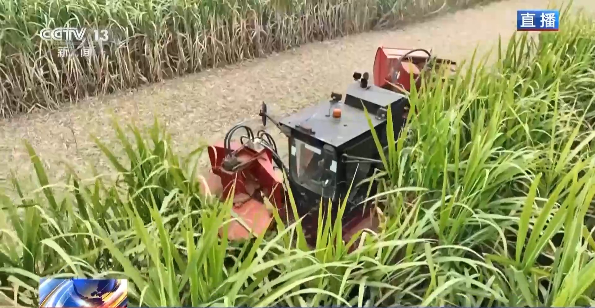 总台记者 邓君洋:我现在位于广西来宾国家现代农业产业园的一处糖料蔗基地。在来宾,联合收割机从2014年开始就使用,比较适用于地形平坦、种植面积大的甘蔗基地。