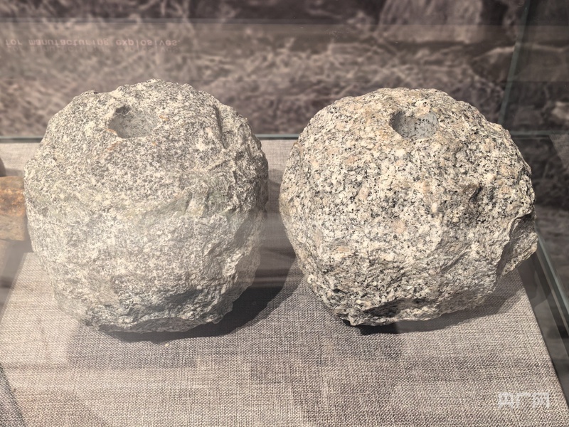 地雷战纪念馆馆藏石雷和制作炸药的石碾(央广网记者 刘佳音 摄)