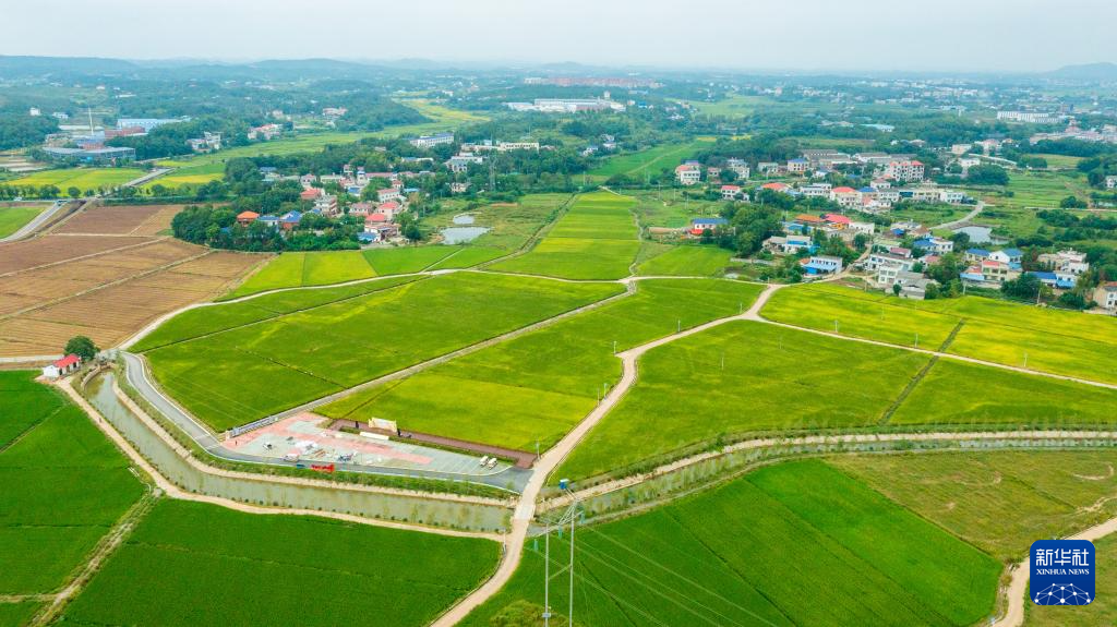 这是2024年6月19日在浏阳市永安镇丰裕村拍摄的稻田(无人机照片)。新华社发