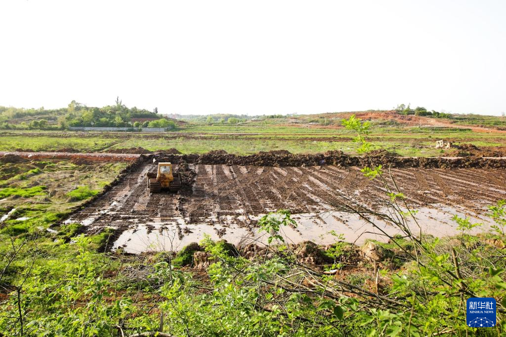 2022年4月7日,长沙机场改扩建项目被占耕地在进行耕作层剥离作业。新华社发(邹礼卿 摄)