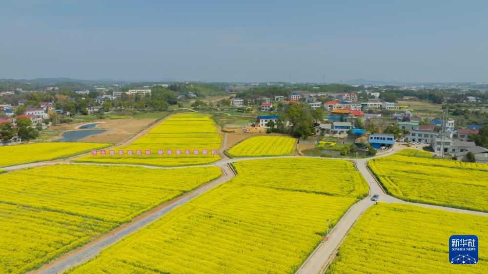 这是2023年3月10日拍摄的浏阳市永安镇丰裕村改良后耕地上的油菜花(无人机照片)。新华社发