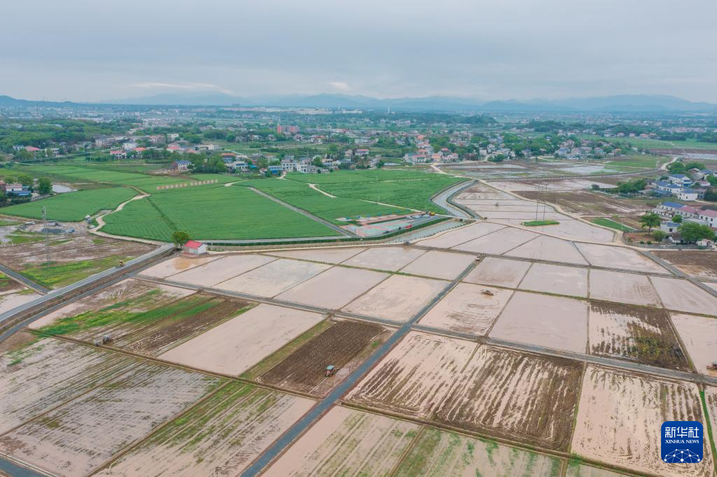 2024年6月19日,在浏阳市永安镇丰裕村改良后的耕地上,村民操作机械插秧。新华社发