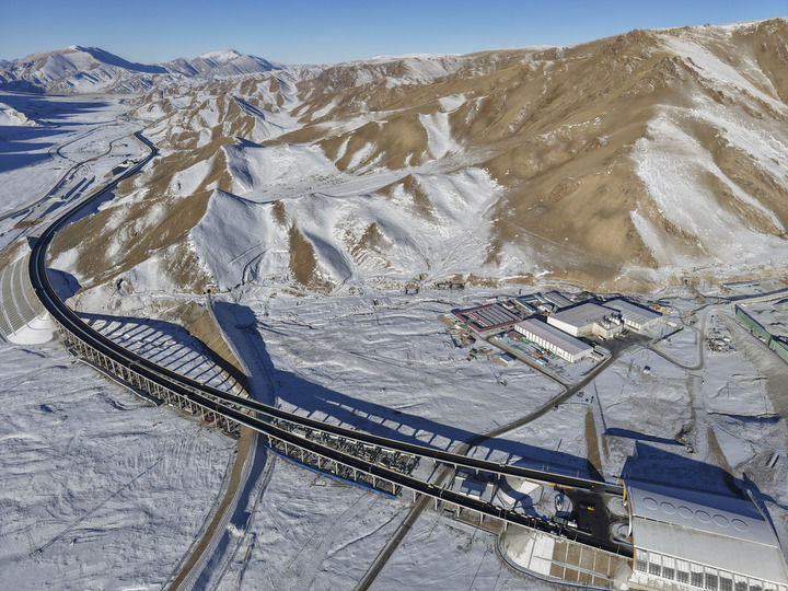 桥隧相连的乌尉高速公路穿越天山山脉(2025年12月23日摄,无人机照片)。新华社记者 胡虎虎 摄
