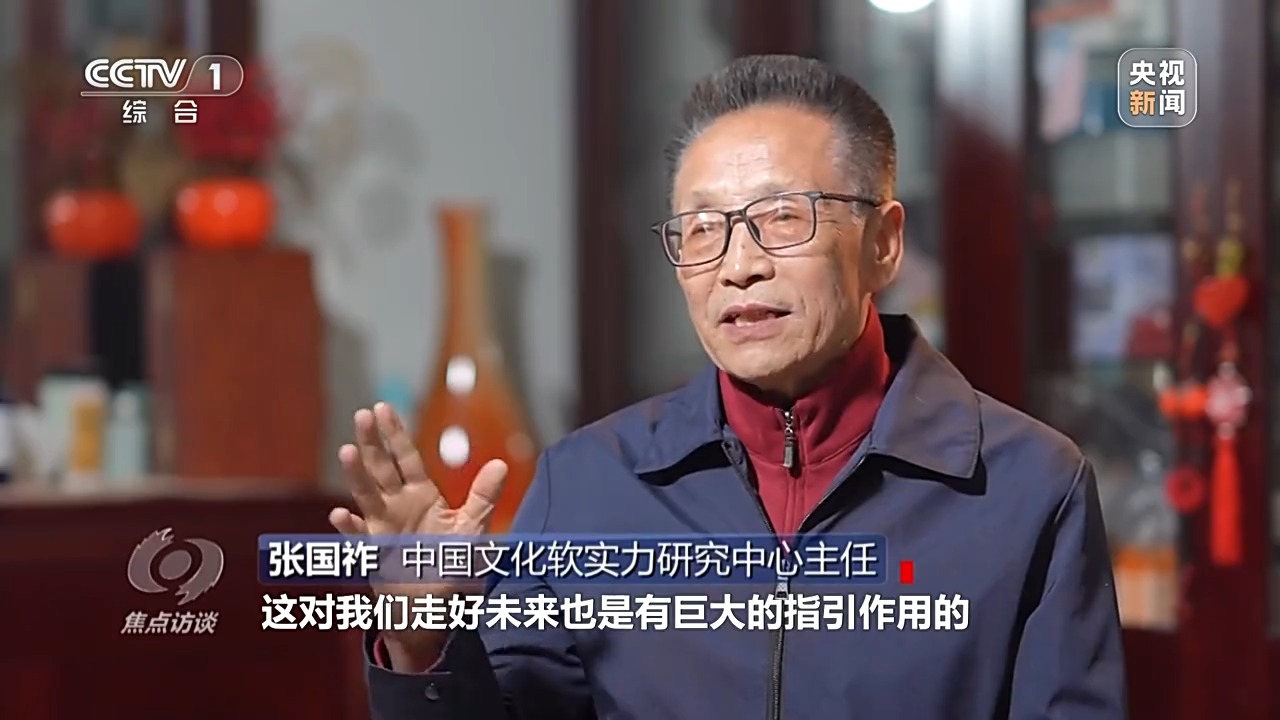 中国文化软实力研究中心主任 张国祚:总书记非常重视文化。文化自信是更基础、更广泛、更深厚的自信。对一个国家和民族来说是最基本、最深沉、最持久的力量。总书记也讲过,中华优秀传统文化是我们文化软实力的最大优势。这样的优势可以渗透到百姓日常生活当中,所以我们现在把传统文化渗透文化的各个领域,已经得到广大人民群众的衷心热爱了,已经形成不少这样的文化热点了。