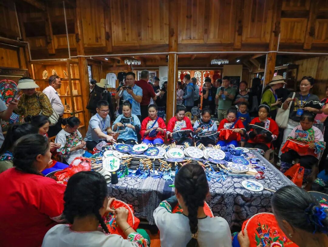 游客在十八洞村苗绣乡村振兴基地。宋显金摄(中经视觉)