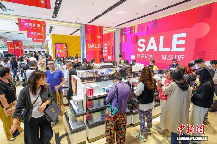 图为元旦假期,cdf海口国际免税城迎来购物热潮,众多游客前来选购心仪商品。 中新网记者 骆云飞 摄