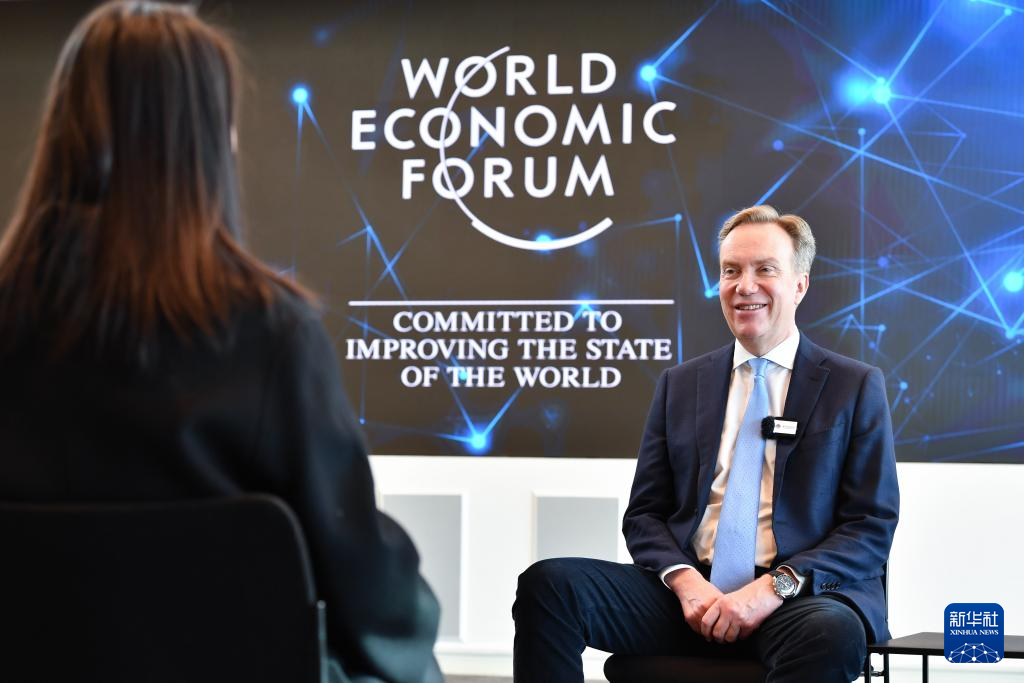 1月14日,在瑞士日内瓦世界经济论坛总部,世界经济论坛总裁博尔格·布伦德接受新华社记者专访。 新华社记者 连漪 摄