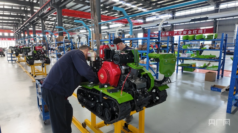 达州丘陵山区现代农林装备专业园区的生产线上,工人们正在组装农机装备(央广网记者 昌思荣 摄)