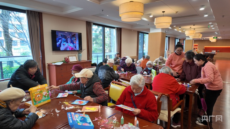 崇州青城山下的一家颐养中心内,老人们正在画画、做手工(央广网记者 昌思荣 摄)