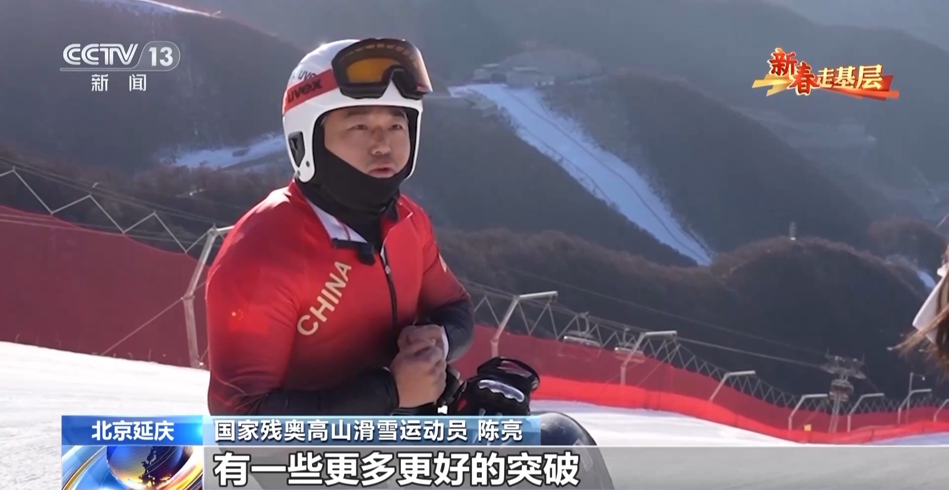 国家残奥高山滑雪运动员 陈亮:当时想要在技术上有更多、更好的突破,导致摔出了雪道外面,鼻骨粉碎性骨折。两周后有一个积分赛,思考了下,在比赛后再进行手术。