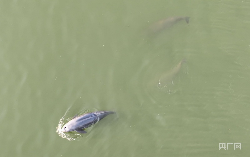 长江江豚在湘江长沙段逐浪(央广网发 陈杰 摄)