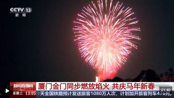 2026年海峡两岸春节焰火晚会大年初一晚上在厦门、金门两地同步上演,为两岸同胞献上一场视听交融的艺术盛宴,传递温暖祝福。