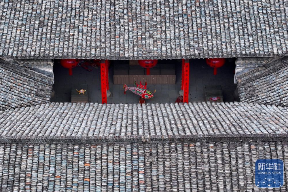 1月29日拍摄的瞻淇村内的祠堂敦睦堂(无人机照片)。