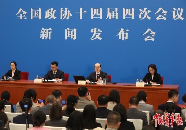 3月3日,北京,人民大会堂一层新闻发布厅,全国政协十四届四次会议新闻发布会上,中青报·中青网记者胡春艳提问。中青报·中青网记者 陈剑/摄