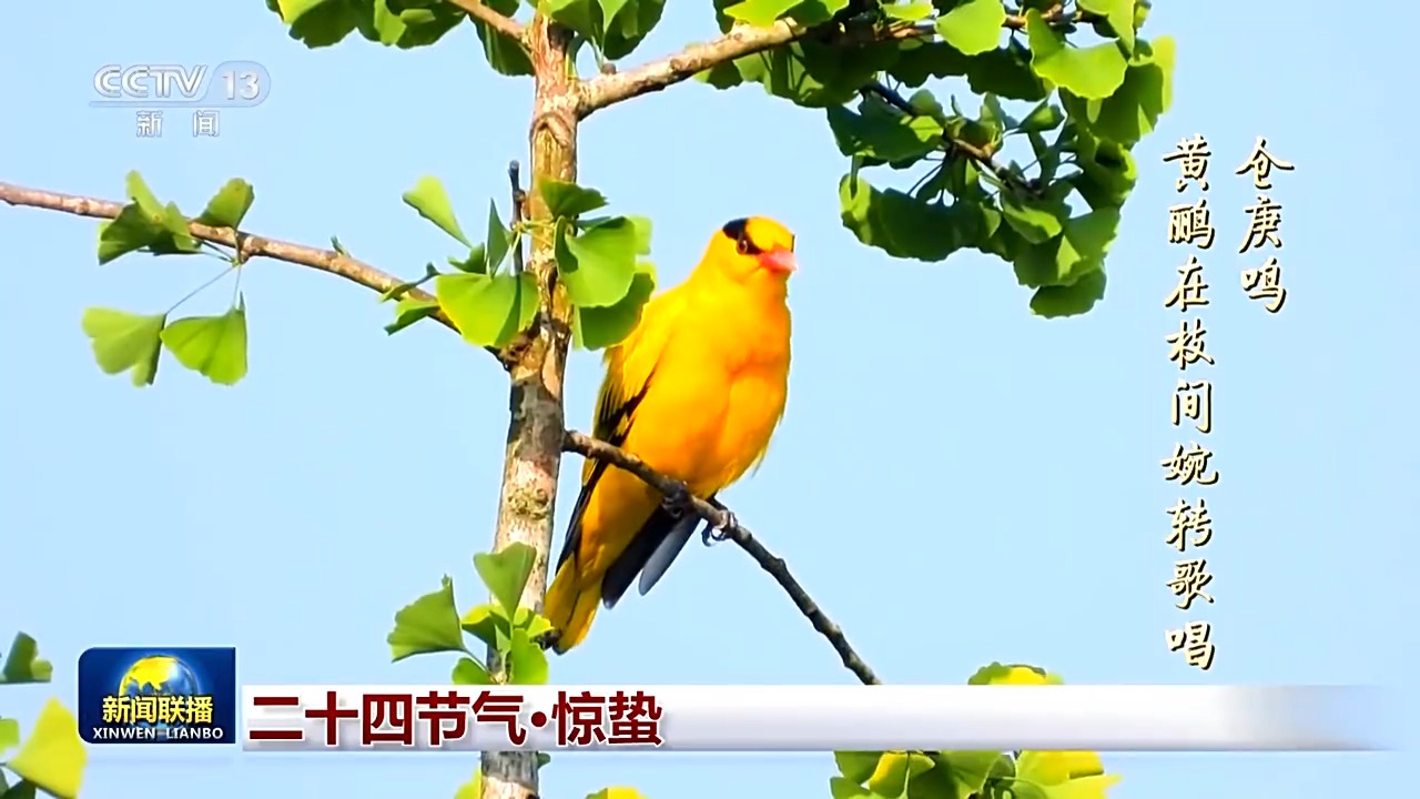 “仓庚鸣”,仓庚也就是黄鹂,鸟儿们感知到春意的律动,在枝间婉转歌唱。