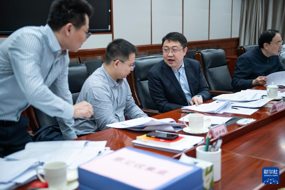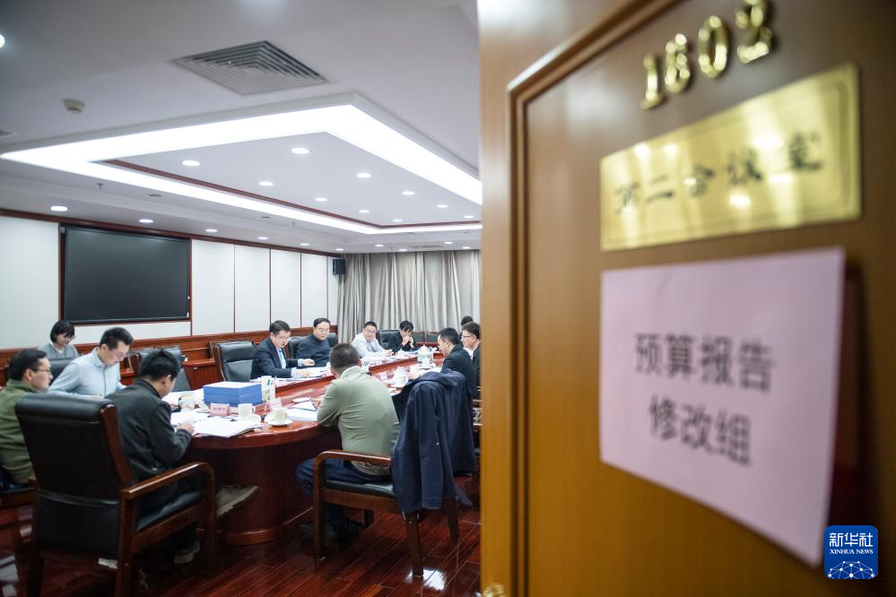 3月7日,财政部工作人员根据代表意见建议讨论修改2026年预算报告。新华社记者 孙瑞博 摄