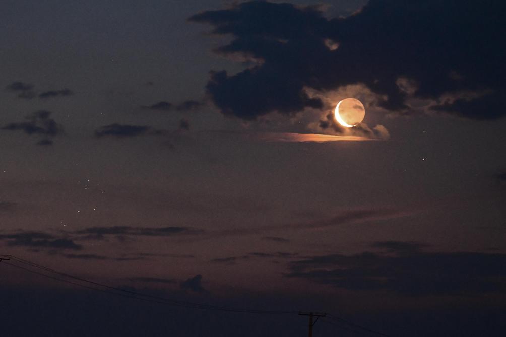 “19时天黑下来,蛾眉月和昴星团将出现在西方的天空中,两者的角距离仅1度多,大致相当于两个满月的宽度。这是非常适合使用双筒望远镜以及低倍率天文望远镜观测的天象,也十分适合拍摄,在这个月相下还能够拍到‘新月抱旧月’与昴星团同辉。”中国天文学会会员、天津科学技术馆天文科普专家刘仲利说。