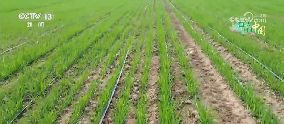 除了空中巡检,工人师傅还加紧铺设水肥一体化滴灌带,这套滴灌系统和田间安装的土壤墒情监测仪、微型气象仪联动作业,能够自动调控“高频微灌”模式,把配比好的水肥,定时、定量送到地下20厘米的小麦根系活跃层,有效促进小麦根系生长。