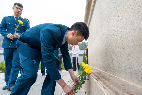 活动伊始,全体人员怀着崇敬之心,向英雄先烈敬献花篮,整理缎带、肃立默哀,深切缅怀革命先烈为国家独立、民族解放和人民幸福作出的不朽功勋,寄托对英烈的无限哀思与崇高敬意。