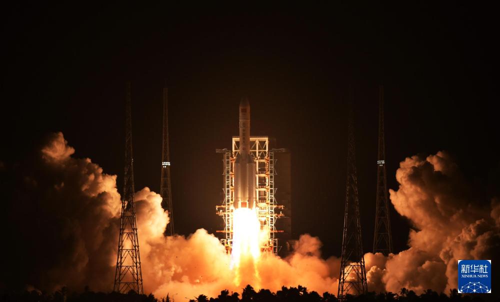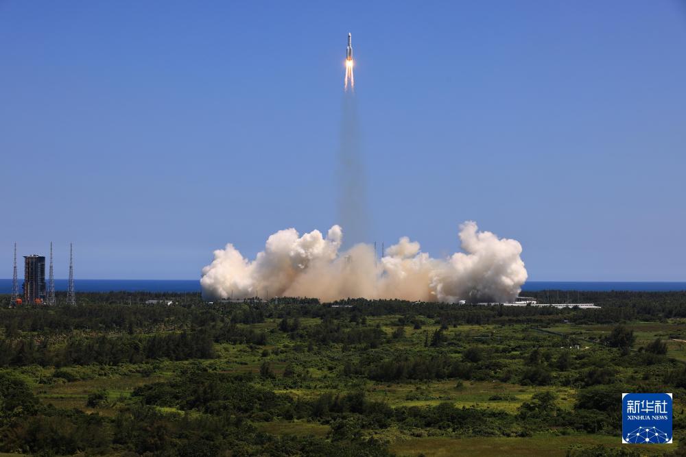 2022年7月24日14时22分,搭载问天实验舱的长征五号B遥三运载火箭,在我国文昌航天发射场准时点火发射,约495秒后,问天实验舱与火箭成功分离并进入预定轨道,发射取得圆满成功。新华社记者 李刚 摄
