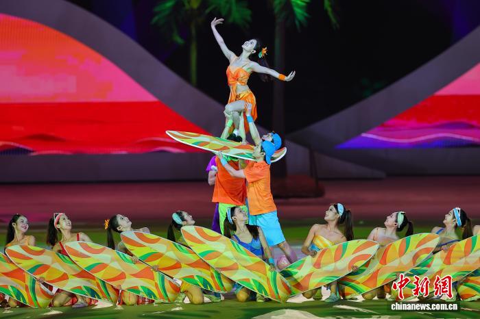 4月22日晚,第六届亚洲沙滩运动会开幕式在海南三亚举行。图为开幕式上的文艺表演。 中新社记者 骆云飞 摄